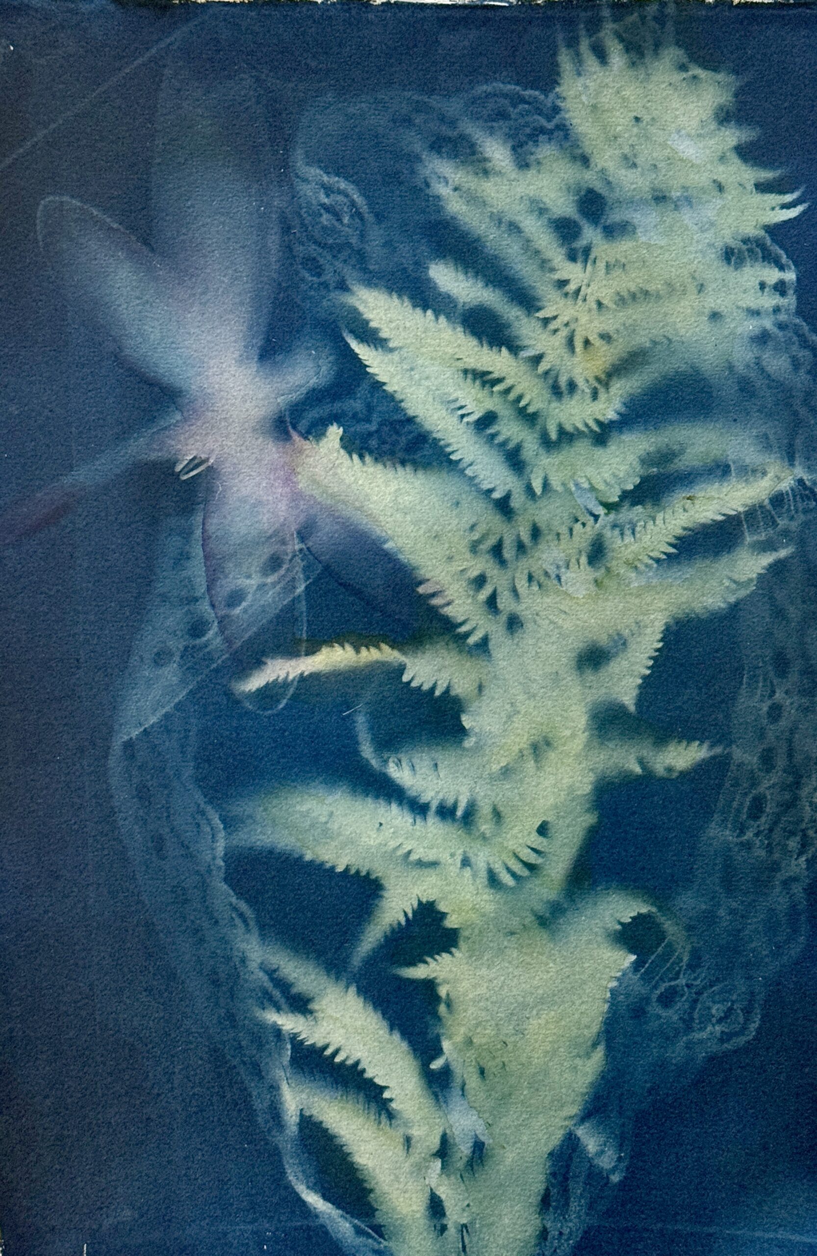 In this workshop, participants will create one-of-a-kind cyanotype images. Our camera-less photography technique (invented in 1842) will involve lying (flattish) objects on paper coated with an iron salt solution, exposing them to UV light, and washing the paper with water to create stunning white and Prussian blue images. The images can also be enhanced with light watercolor washes. During the two-hour class, students will create at least two images. While the instructor will have (flat) objects, such as dried flowers and leaves, lace and ribbon, and seashells, used to create, students are welcome to bring their own.