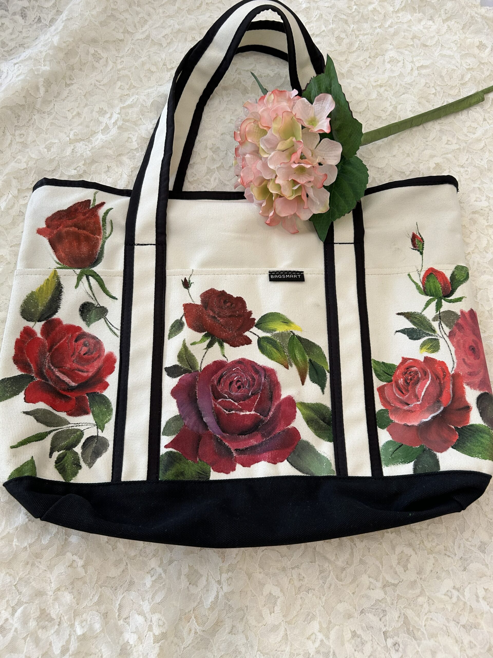 In this workshop participants will learn how to paint floral design on a fabric tote bag using fabric paints. We will cover basic floral shapes, color, and layering. This class is beginner –friendly and focuses on creativity while creating hand painted totebag to take home.