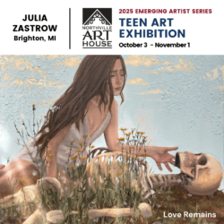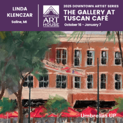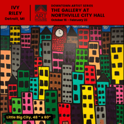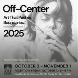In the main gallery, Off Center: Art That Pushes Boundaries features 58 works by 52 artists that strive to inspire thought, provoke emotion, and thrill visitors. On our teen Emerging Artist Wall is Julia Zastrow. The works of Lori Zurvalec and Linda Klenczar are at Tuscan Cafe and the paintings of Ivy Riley are at City Hall.