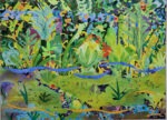 “My art work reflects my view of a sometimes incomprehensible, challenging world. The subject matter of my work almost always refers to the natural world, foliage or trees that I have sketched. If I am not painting directly from life, I have my sketchbooks spread out before me and I refer to the drawings as I work. My compositions are deliberate, generally worked out in my sketchbooks, revolving around a specific concept or idea.