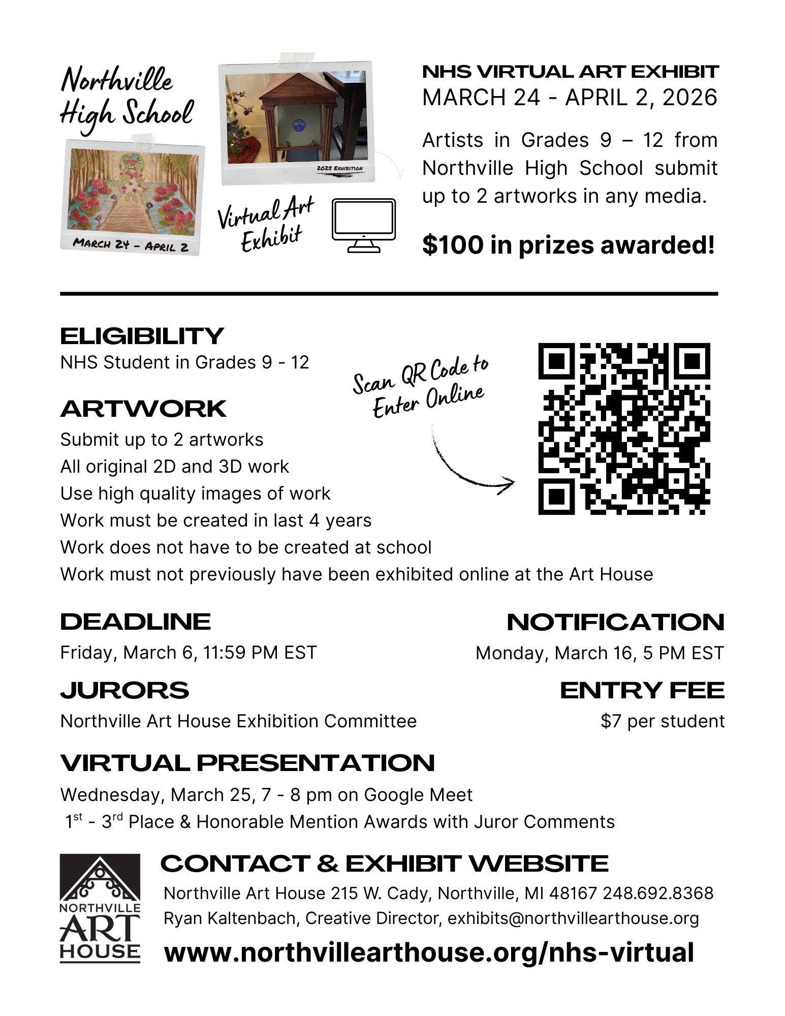 For more information or questions contact Ryan Kaltenbach, Creative Director, at exhibits@northvillearthouse.org.